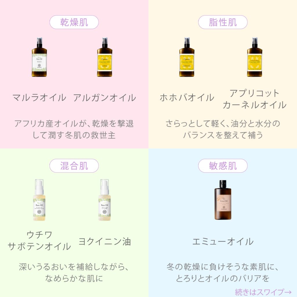 今回はスキンタイプに合わせたオイルをお教えします♪